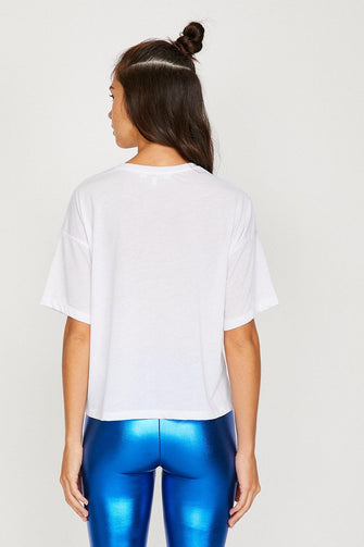 Women White Short Sleeve Cycling Neck T Shirt