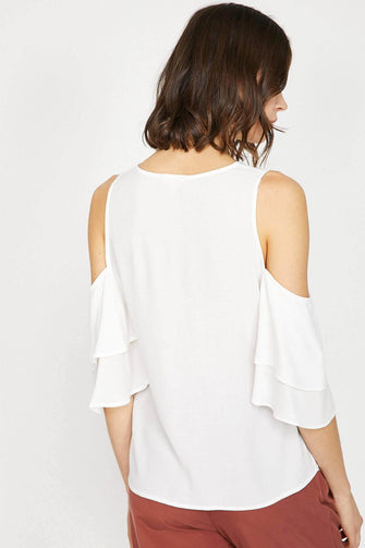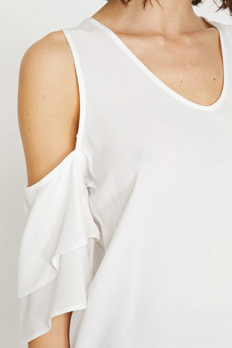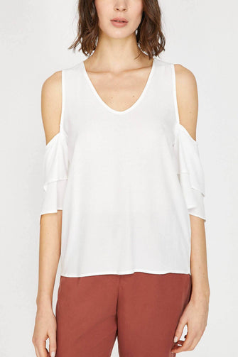 Women White Shoulder Detail Bluz