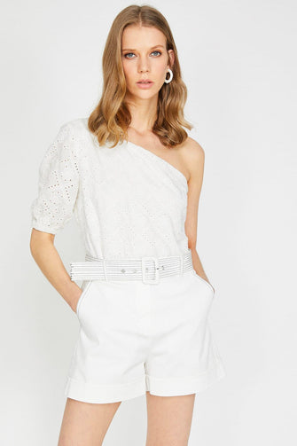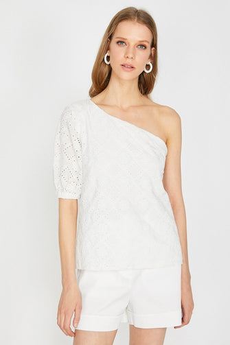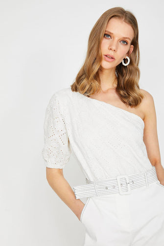 Women White Shoulder Detail Lace Detail Blouse