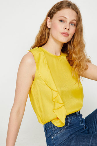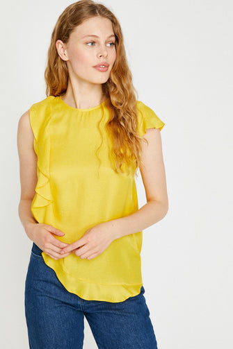 Women Yellow Bike Collar Blouse