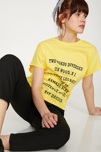 Women Yellow Printed Printed T Shirt