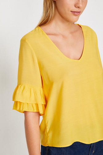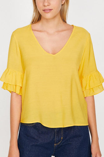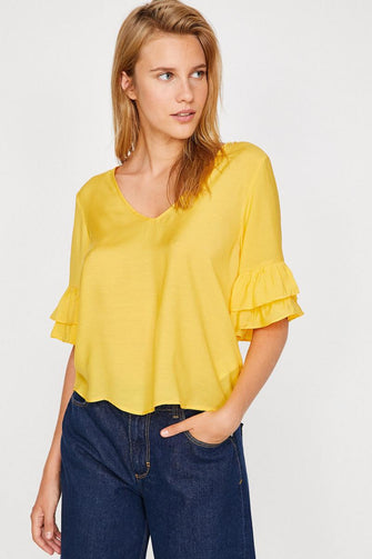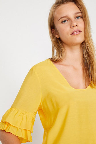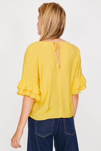 Women Yellow Ruffle Detail Bluz