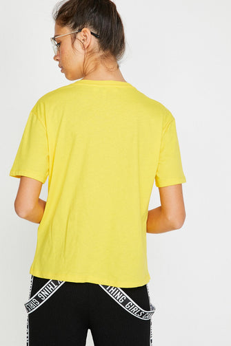 Women Yellow Short Sleeve Cycling Neck T Shirt