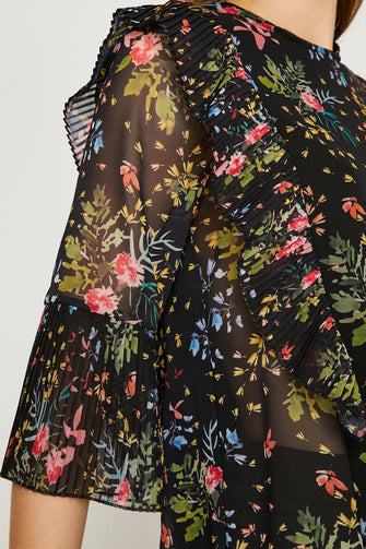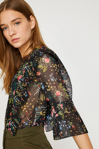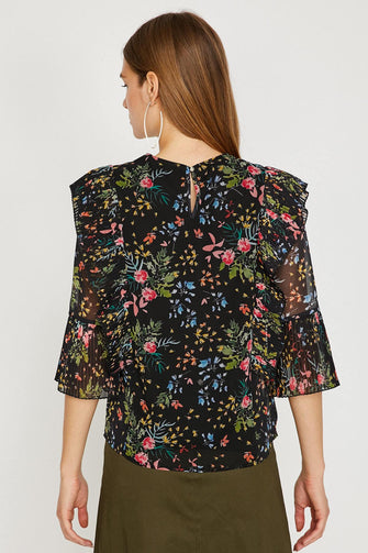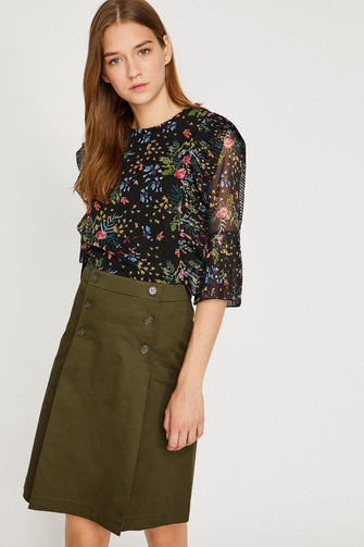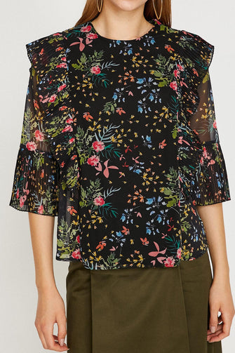Women Yellow Tulle Detailed Bike Collar Blouse