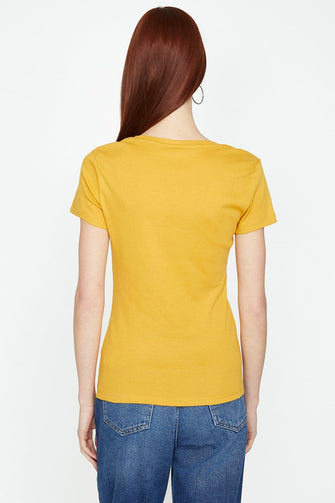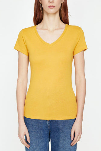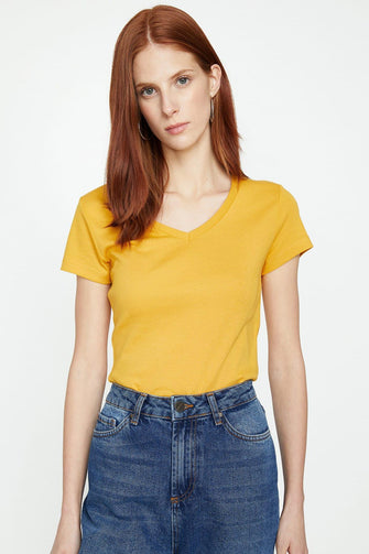 Women Yellow V-Neck T-Shirt