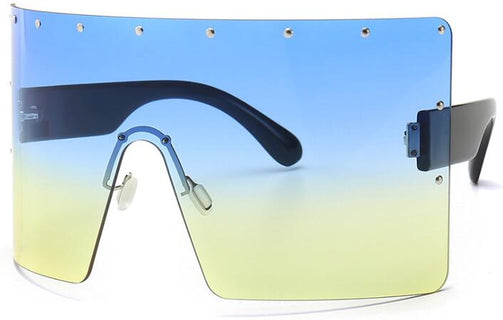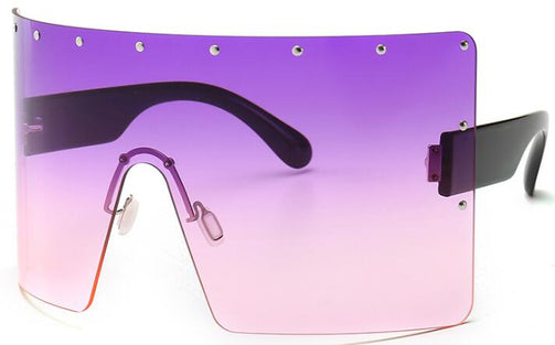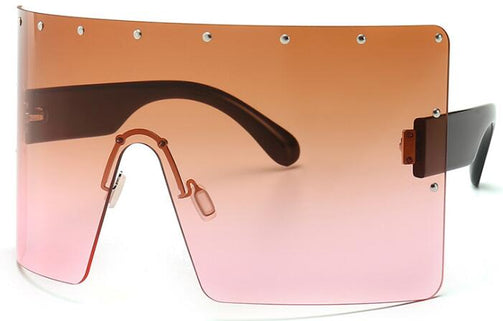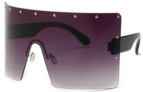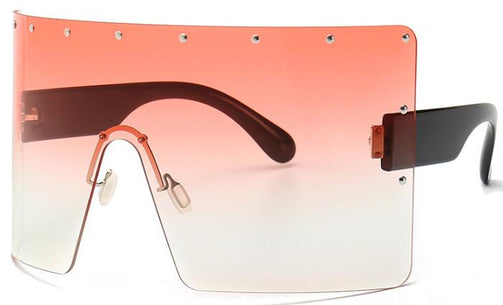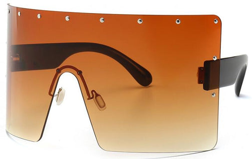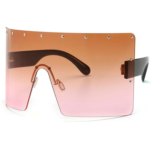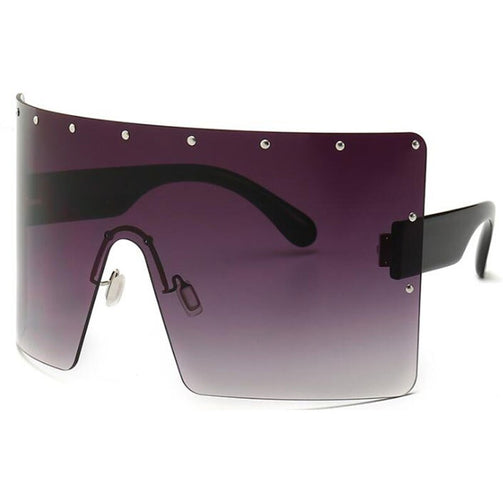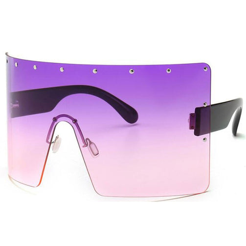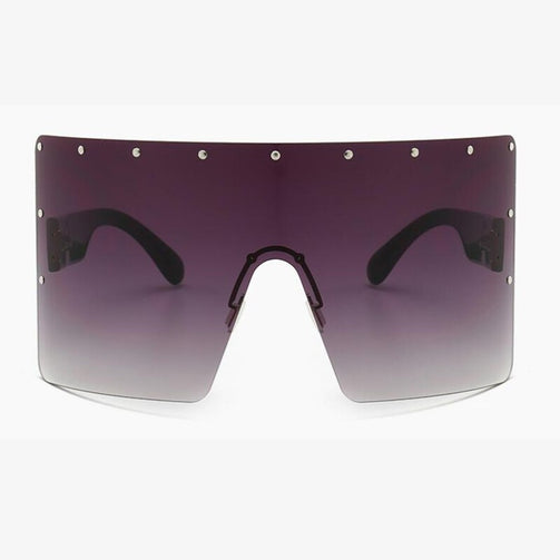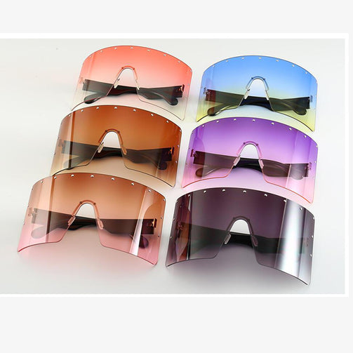 Large Face Mask Shield Futuristic Sunglasses Women Trendy Rivet Big Sun Glasses Men Rimless Goggles Oversized Sunglasses