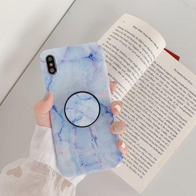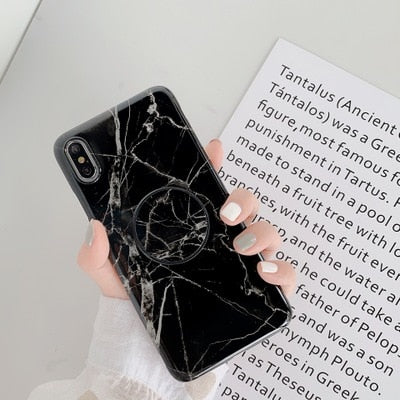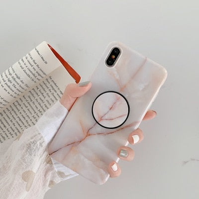 Luxury Crack Marble Phone Case For iPhone X XS Max XR 8 7 with Grip Holder