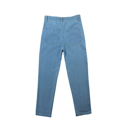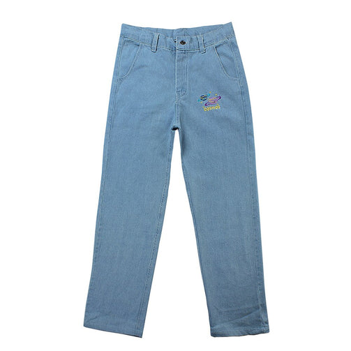 New Arrivals 2018 Preppy Style Women Jeans Full Length Cartoon Embroidery High Waist Ladies Straight Pants Jeans Trousers