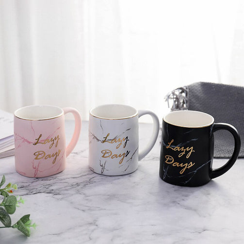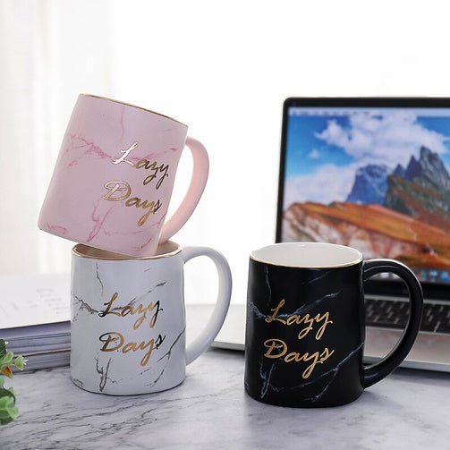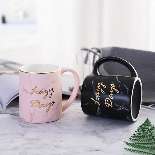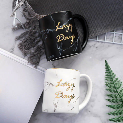 Nordic Gold Letter Lazy Days Marble Coffee Mug