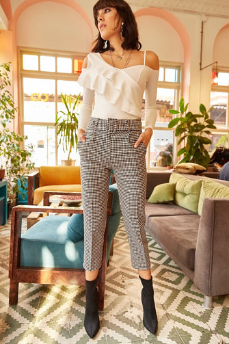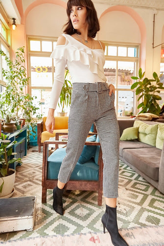 Female Arched Pockets Crow's feet Cachet Carrot Pants