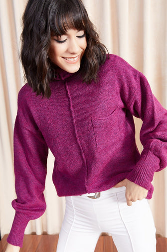 Female Right Collar Pocket Detail Sweater