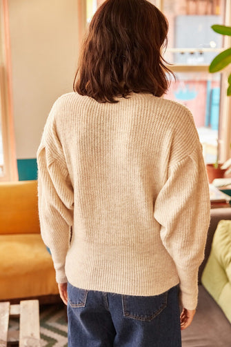 Women Balloon Sleeve Soft Textured Sweater