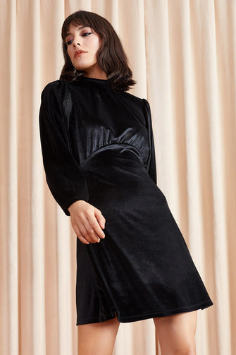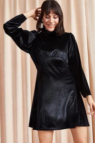 Women Bat Sleeve Circular Velvet Dress