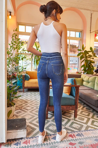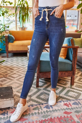 Women Blue Beli Laced Tassel Detail Skinny Jean
