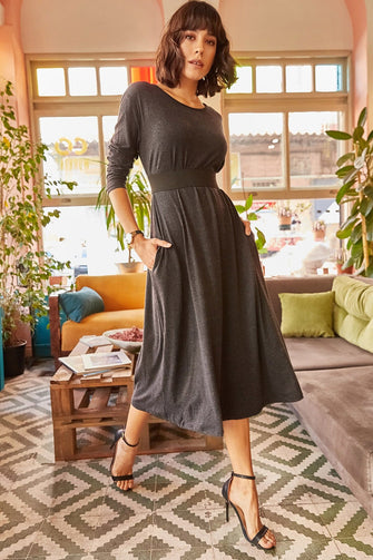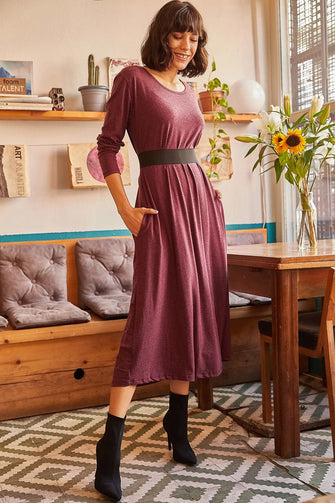 Women Cherry Decay Pockets Temporary Shed Wool Viscose Dress