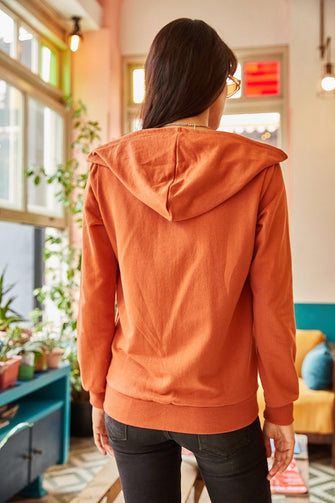 Women Cinnamon Kangaroo Pocket Hooded Sweatshırt