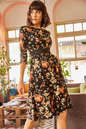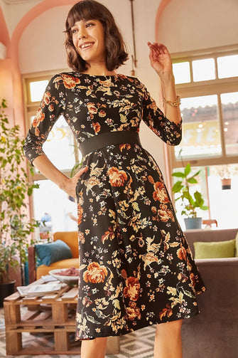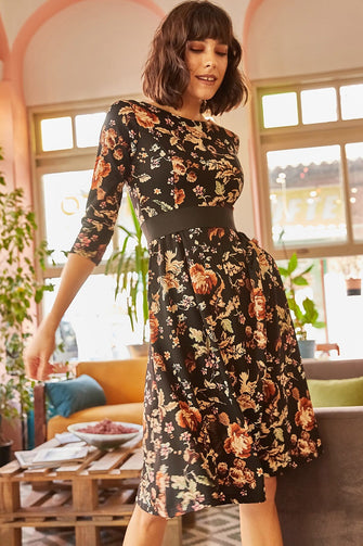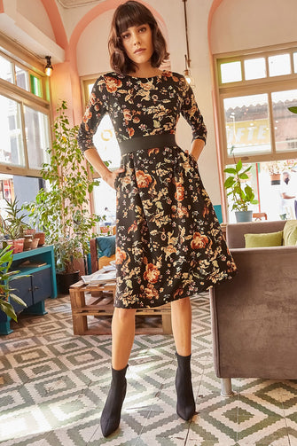 Women Floral Pockets Cloche Dress