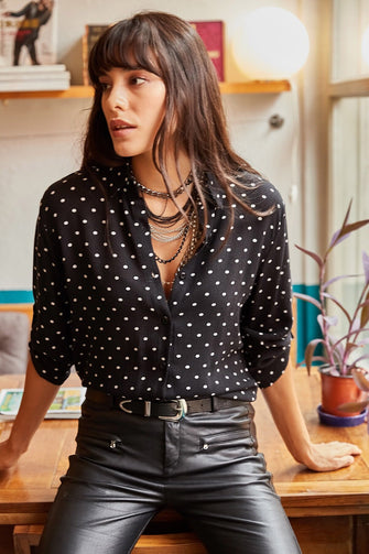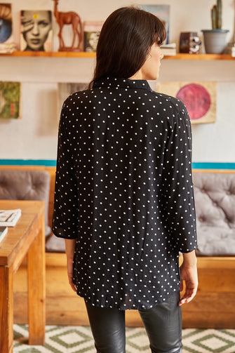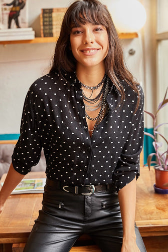 Women Fold Sleeve Polka Dot Shirt