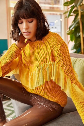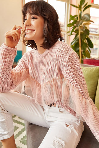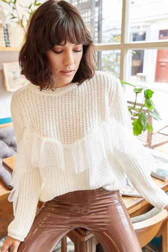 Women Fronting Tulle Garnili Knitwear Sweater