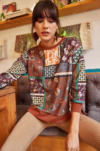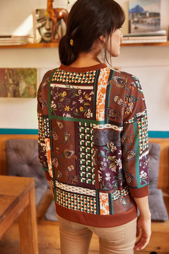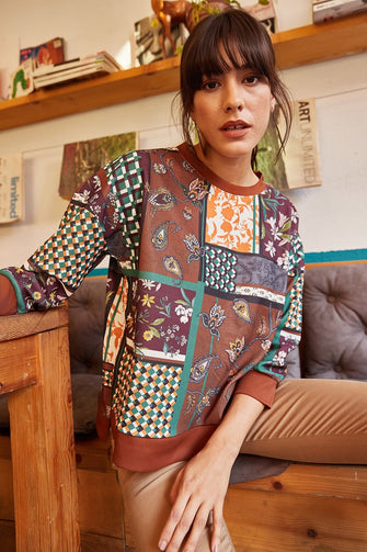 Women Multi Patch Three Quarter Sleeve Ottoman Sweatshirt