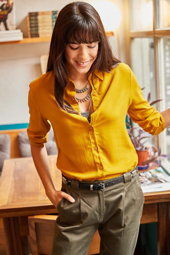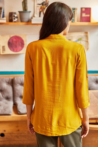 Women Mustard Sleeve Fold Viscose Shirt