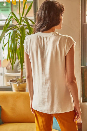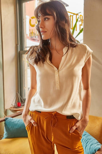 Women Raw White V-Neck 4 Button Viscose Blouse