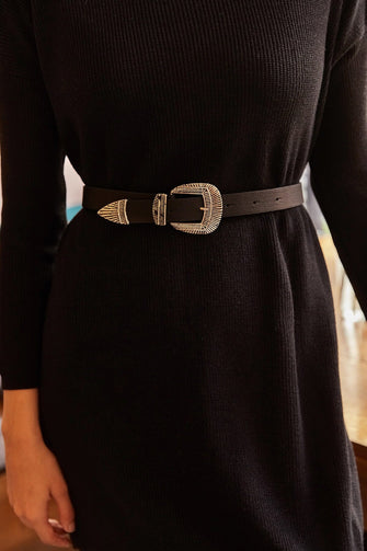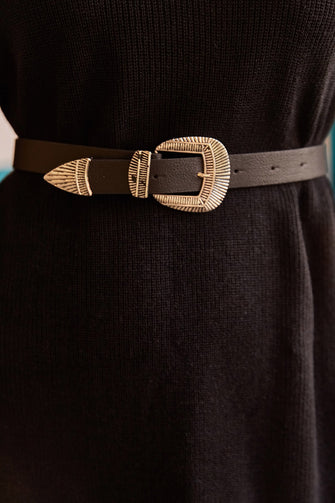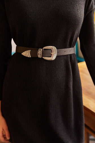 Women 'S Black Single Buckle Faux Leather Belt