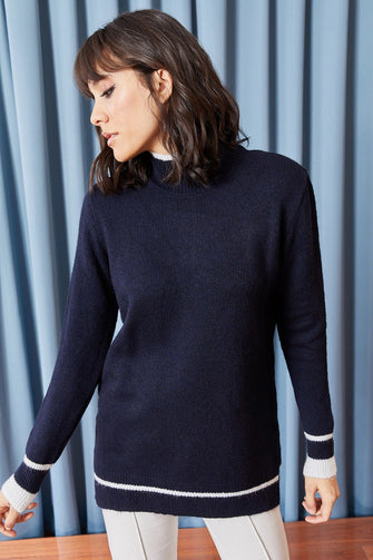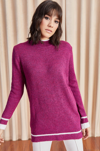 Women 'S Collar And Skirt Thin Stripe Knitwear Tunic