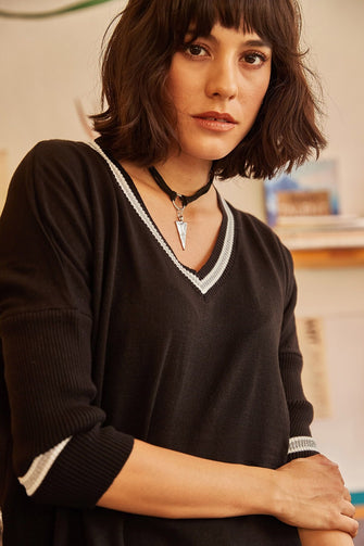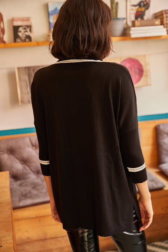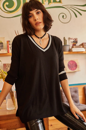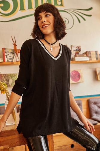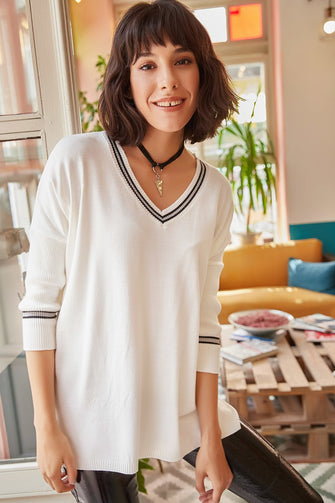 Women 'S Collar And Sleeve Stripe Temporary Shed Slim Knitwear Sweater