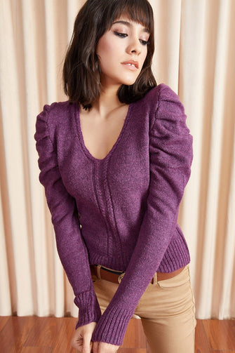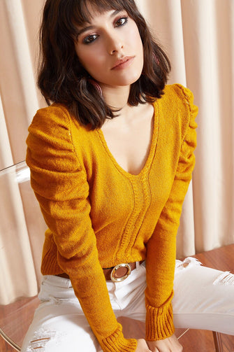 Women 'S Princess Sleeve V Collar Soft Textured Sweater