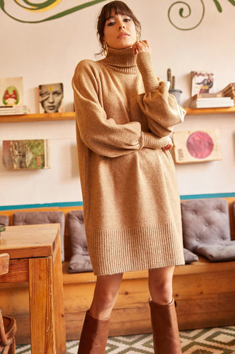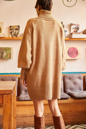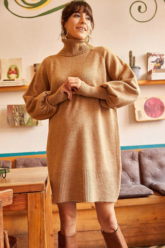 Women 'S Turtleneck Neck Balloon Sleeve Temporary Shed Sweater Dress