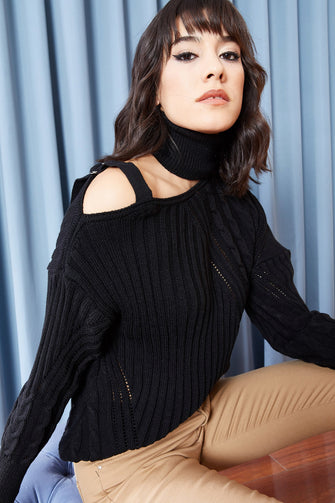 Women Shoulder Handcuffed Turtleneck Sweater Sweater