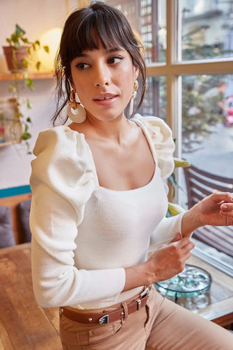 Women Sleeve Detail Knitwear Blouse