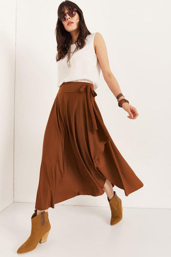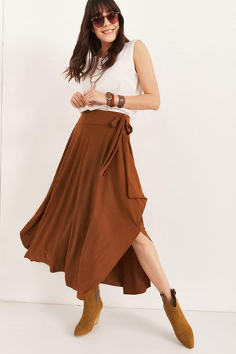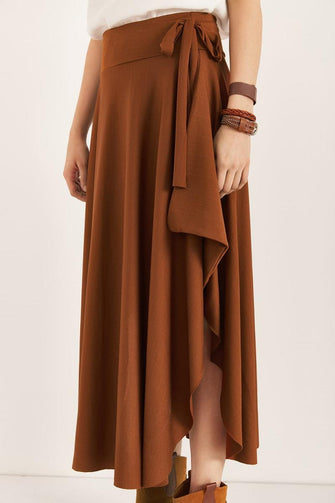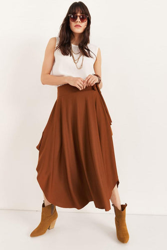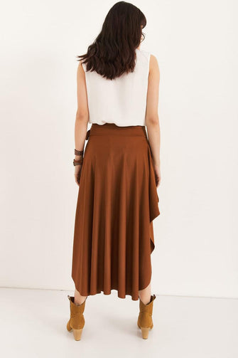 Women Tan Asymmetrical Temporary Shed Skirt