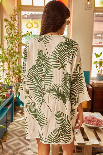 Women White Palm Filet Lace Viscose Kimono