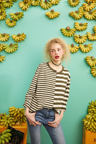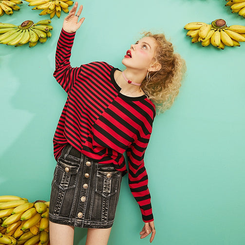 Oversized Striped O-Neck Women's T shirt