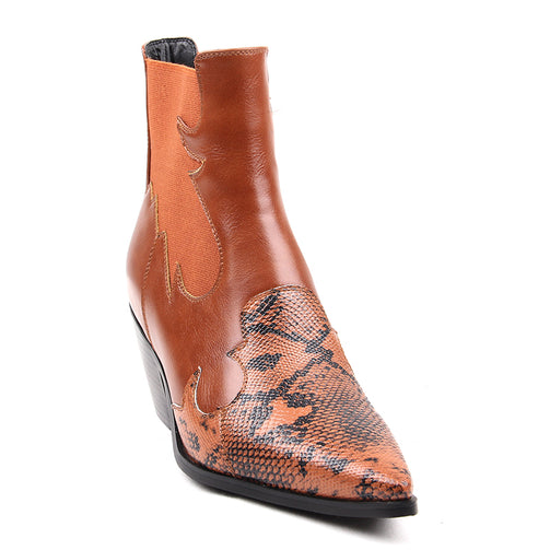 Pointed Toe, Microfiber, Retro, Real Leather Ankle Boots