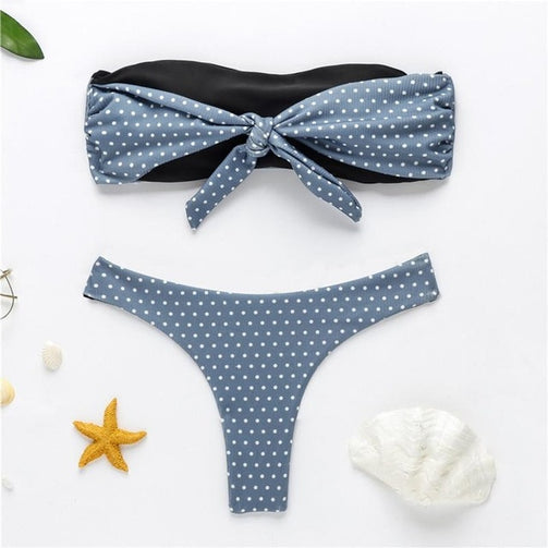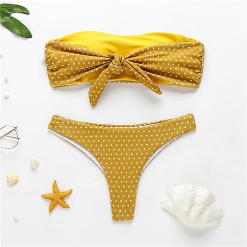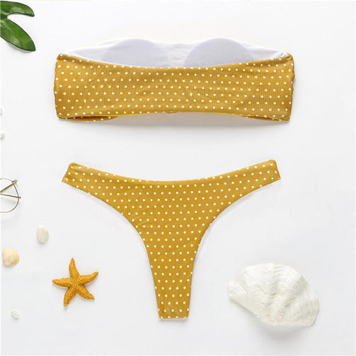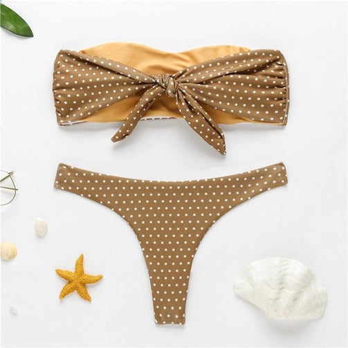 Polka dot bandeau swimsuit
