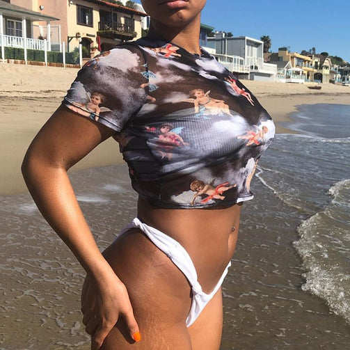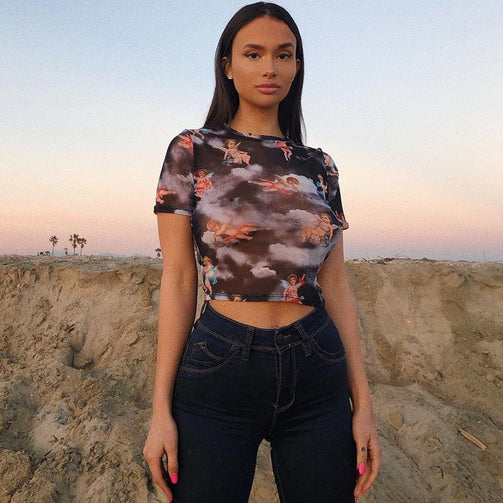 Print Mesh Transparent Crop Top