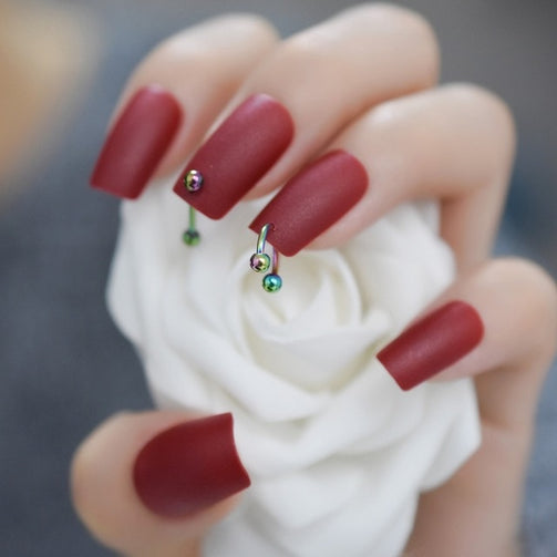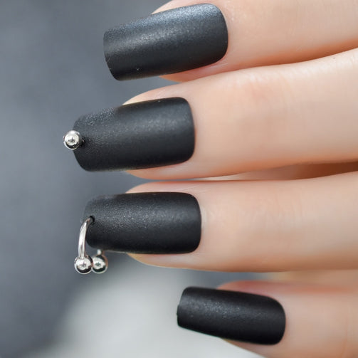 Punk Style /Matte Press on Fake Nails with Ring Rivet