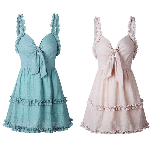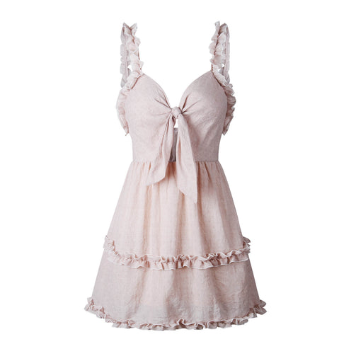 Deep V-Neck Bow Short Ruffles Backless Women Dress