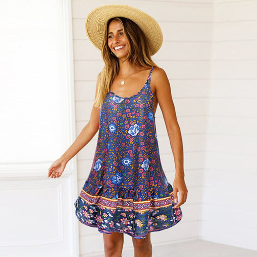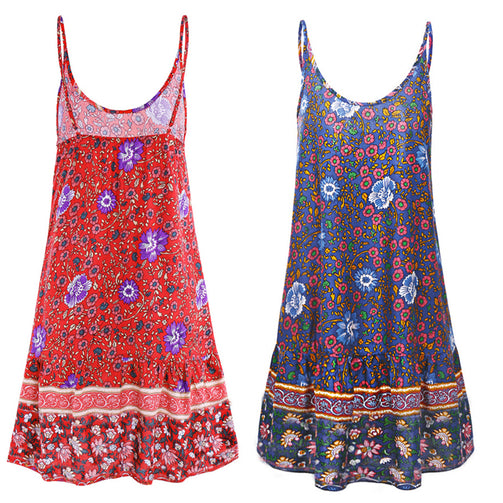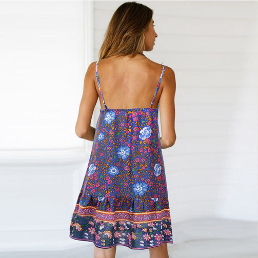 Deep V-Neck Floral Sling Women Beach Dress