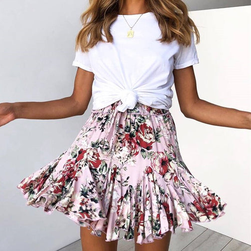Sexy Print Ruffles High Waist Women Skirt
