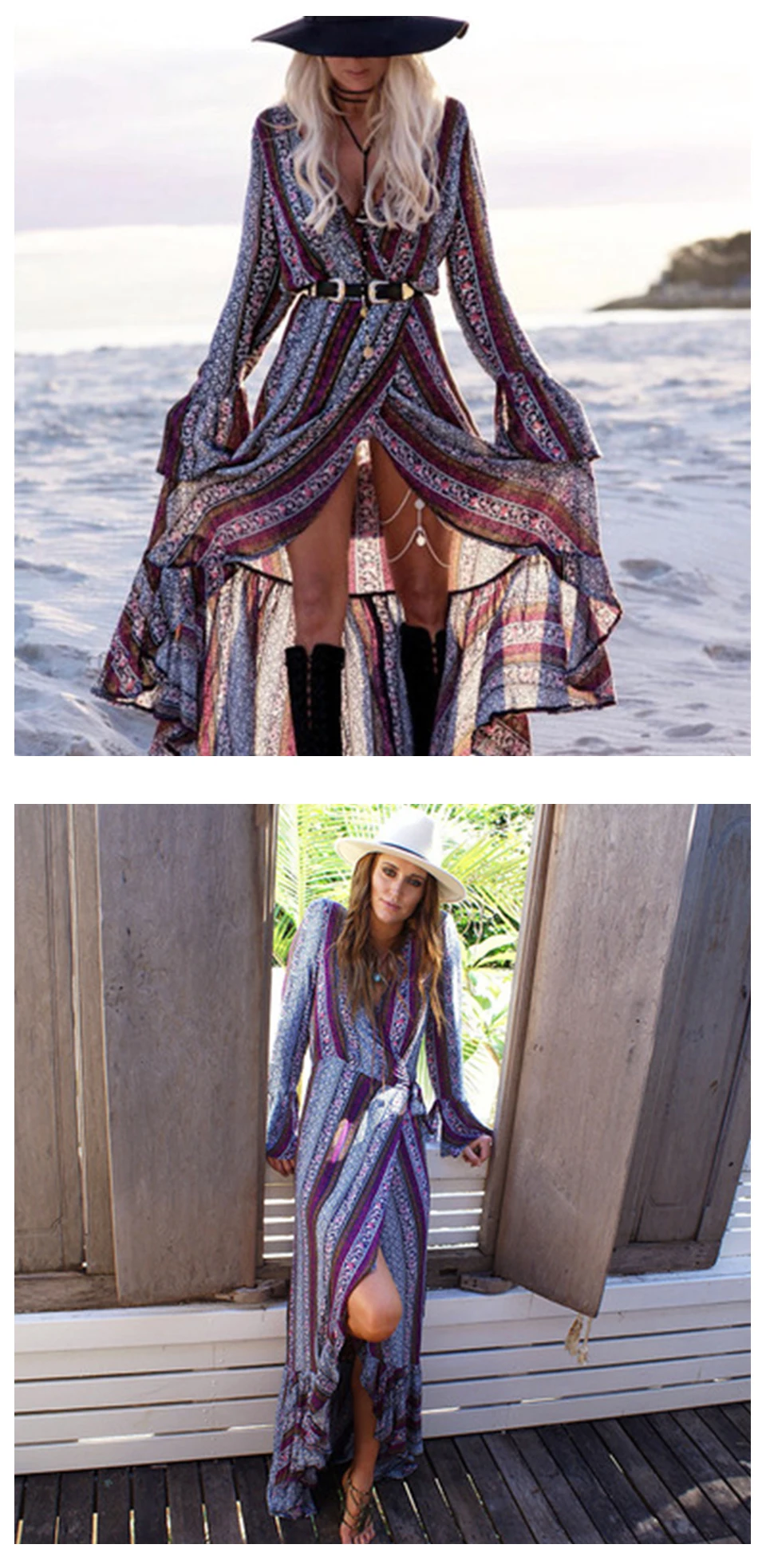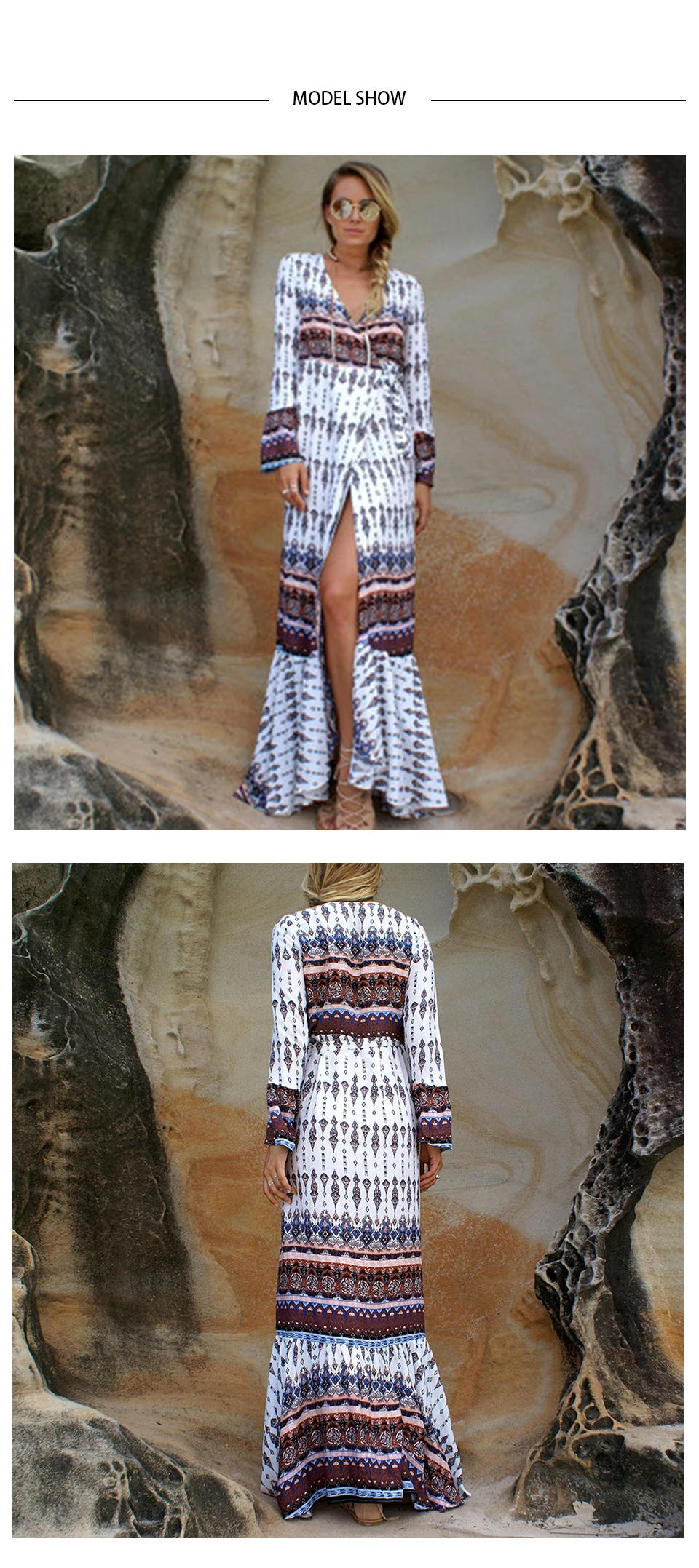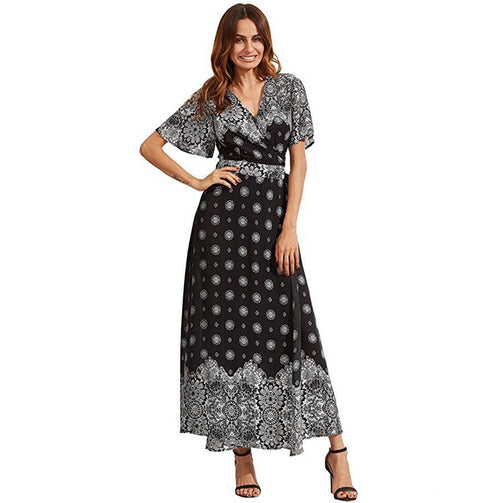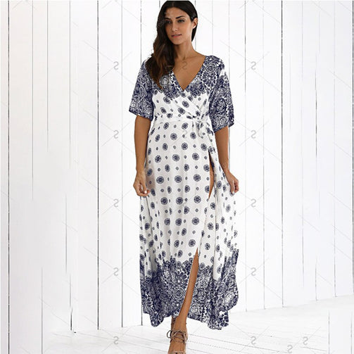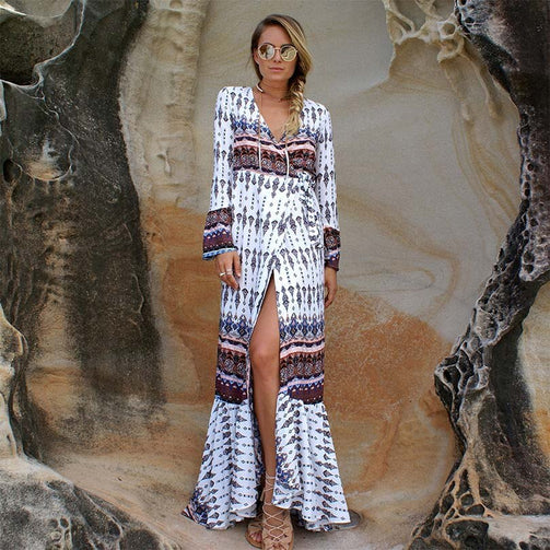 Sexy Ruffle Deep V-Neck Women Long Dress