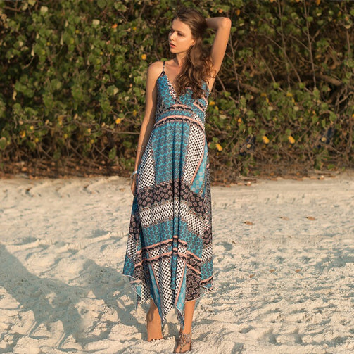 Sexy Sling Women Long Backless Deep V-Neck Dress