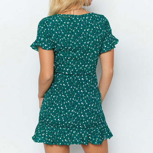 Floral Print Butterfly Sleeve Mini V Neck Women Dress