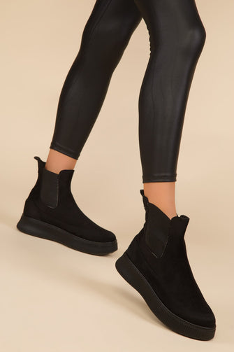 Black Ankle Boots Women Fashion Suede Leather Thick Flats Shoes High Quality Vintage Comfortable Boots New