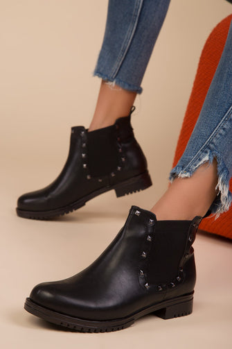 Fashion Ladies Ankle Boots Female High Quality Low Heels High Quality Round Toe Shoes Casual Black Boot