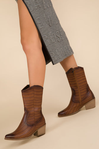 Ladies Fashion Leather Claf Boots Women Low Heels Pointed Boot Female Casual Zipper Shoes High Quality New