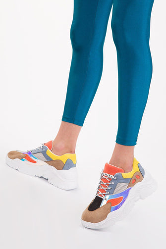 Mixed Color Patchwork Design Women Casual Lace-up Sneaker White Platform Chunky Sports Shoes